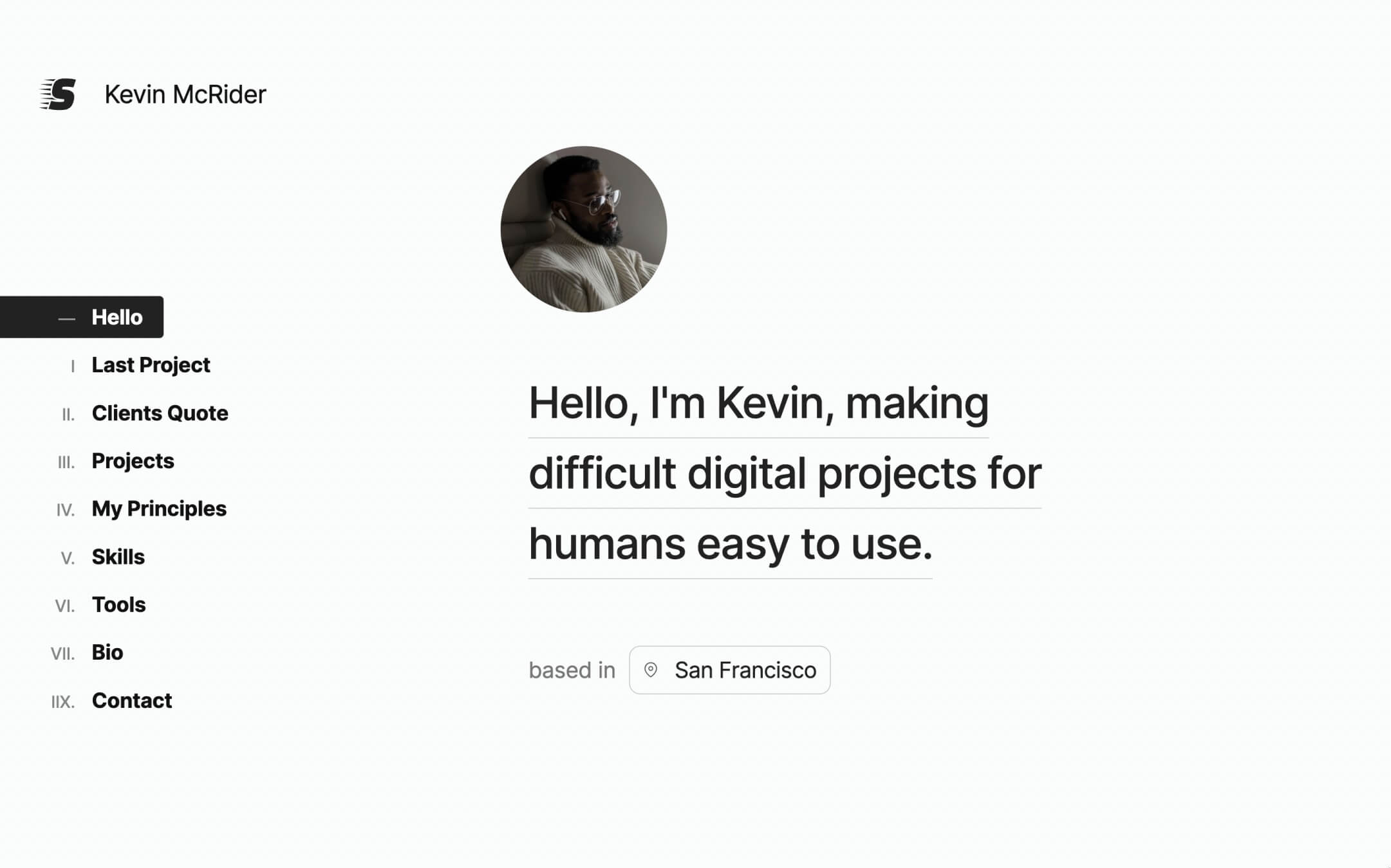 This personal portfolio Webflow template is perfect for individuals who want to showcase their work and skills in a minimalistic and visually engaging way. The template includes a sidebar, which provides quick access to different sections of the website. This makes it easy for visitors to jump to specific sections without having to scroll through the entire website.